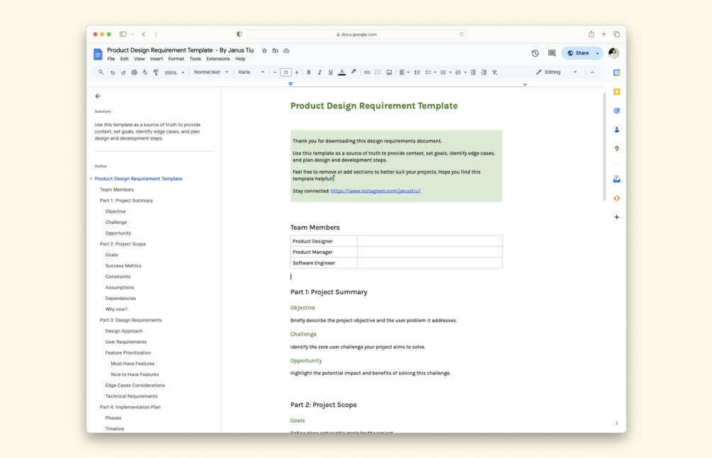 Sharing my Product Design Requirements Document template with you all - something I've created for my previous product design teams.